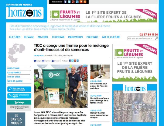 Lors du salon INNOVAGRI, Horizon Eure & Loire a rencontré Rodolphe Ricordel, Directeur de la société TICC, fabricant d’EMIX. La rédaction l’a donc questionné sur le partenariat à l’origine de cette belle réussite !