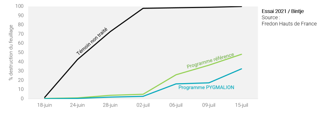 Intégré dans un programme, PYGMALION® permet de gagner en moyenne 15% d’efficacité avec une réduction jusqu’à 1,5 IFT par rapport au programme de référence.