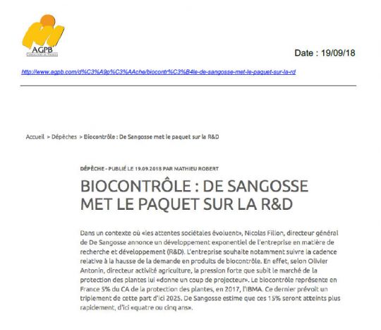 BIOCONTRÔLE : DE SANGOSSE met le paquet sur la R&D