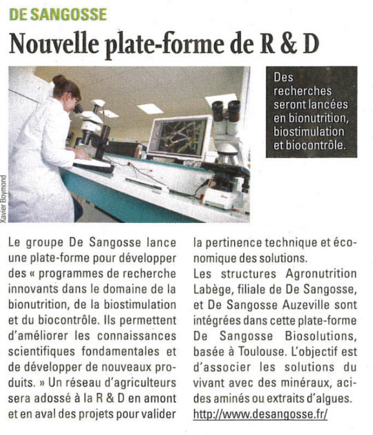 DE SANGOSSE, une nouvelle plate-forme de R&D