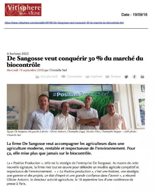 “La firme De Sangosse veut accompagner les agriculteurs dans une agriculture moderne, rentable et respectueuse de l’environnement. Pour ça, elle mise plus que jamais sur le biocontrôle…”