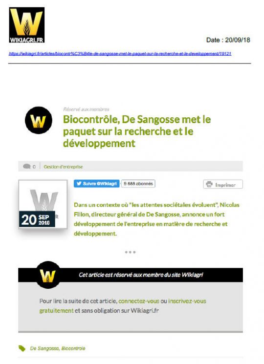 BIOCONTRÔLE, DE SANGOSSE met le paquet sur la Recherche et Développement