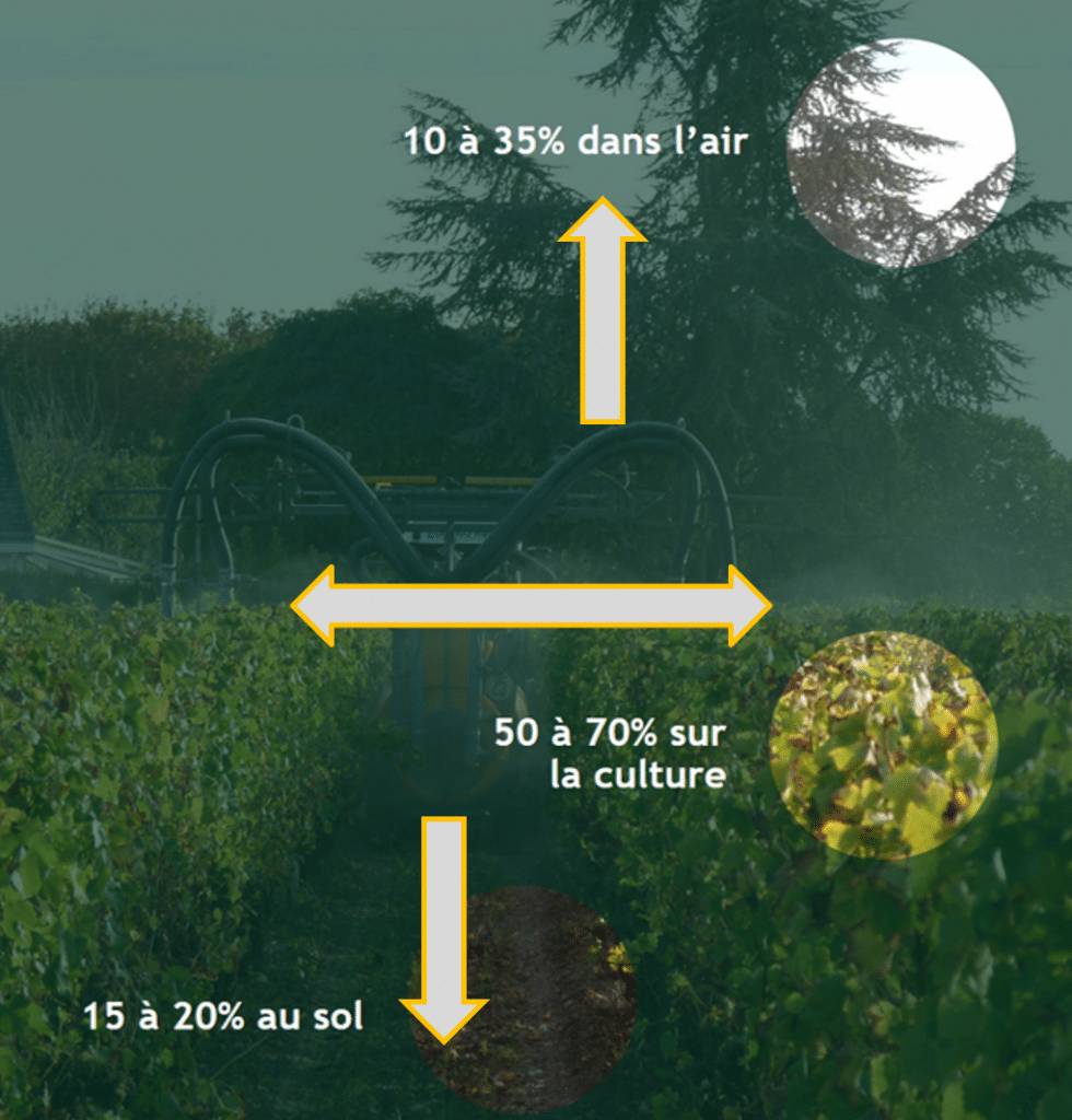 70 à 80 % de pertes en début de végétation et 40 à 50 % en pleine végétation (source Lief Aware) : la majeure partie de la bouillie n’atteint pas sa cible !!